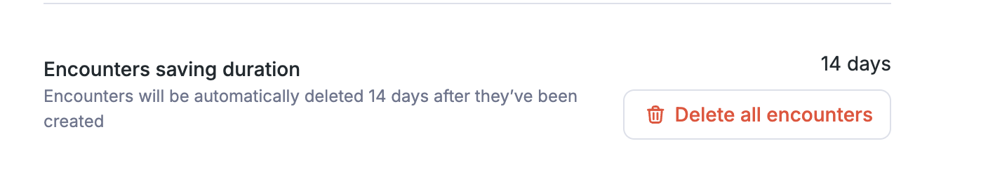 Nabla currently has a 14-day storage policy, which starts when the encounter is created, i.e. '+New encounter' is clicked to create a new encounter.