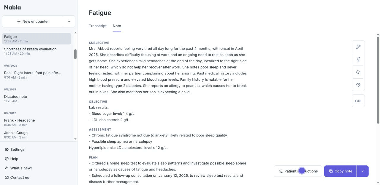 Once the note is generated, click on the ‘Patient instructions’ button at the bottom of the screen